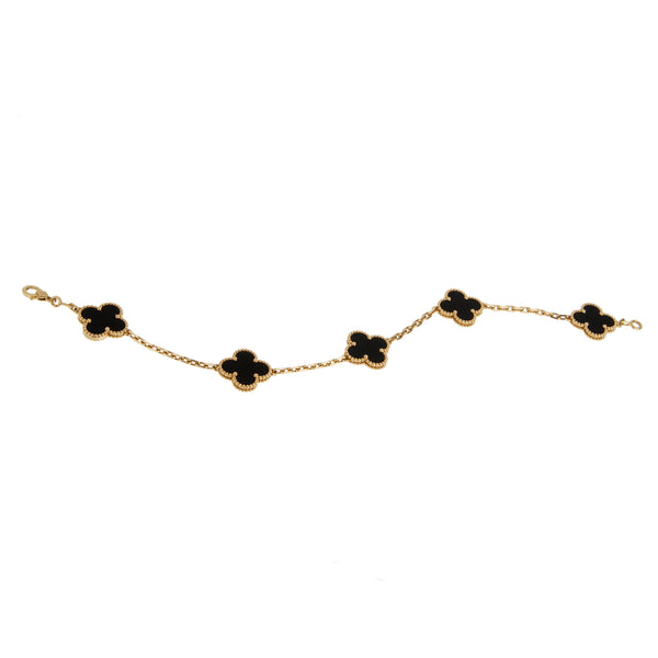Van Cleef & Arpels Vintage Alhambra 5 Motif 18k Yellow Gold Onyx Bracelet
