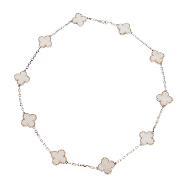 Van Cleef & Arpels Vintage Alhambra 10 Motif 18k White Gold Mother-of-Pearl Necklace