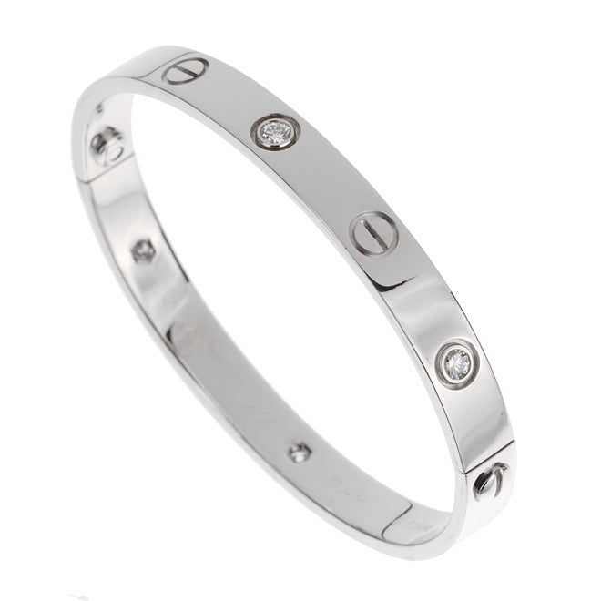 About Cartier Love Classic 6 Diamond 18k White Gold Bangle Bracelet Sz 16