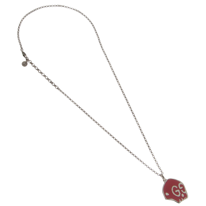 Gucci Ghost Red Enamel Skull Sterling Silver Necklace